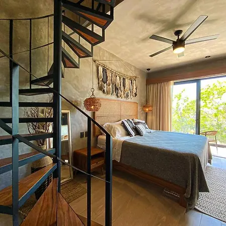 El apartamento se sitúa a unos 20 minutos a pie del centro de Tulum. Este alojamiento está situado a aproximadamente 5 minutos en coche de la Zona Arqueológica de Tulum y el aeropuerto Nacional de Playa del Carmen, a 51 minutos en coche.